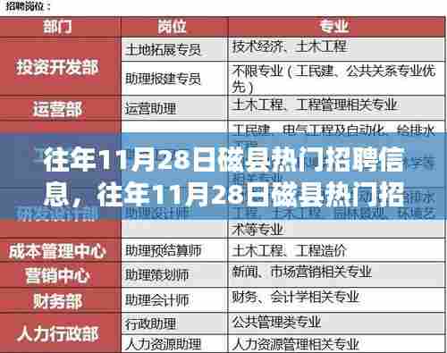 1、招聘信息丰富多样:在往年11月28日这一天,磁县热门招聘信息涵盖了多个行业、职位,满足了不同求职者的需求。