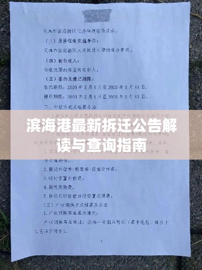 随着城市建设的不断推进,滨海港地区的拆迁工作也备受关注,对于关注滨海港拆迁事宜的人们来说,最新版的拆迁公告查询显得尤为重要,本文将围绕这一主题展开,为读者提供滨海港拆迁公告最新版查询的方式及相关解读。